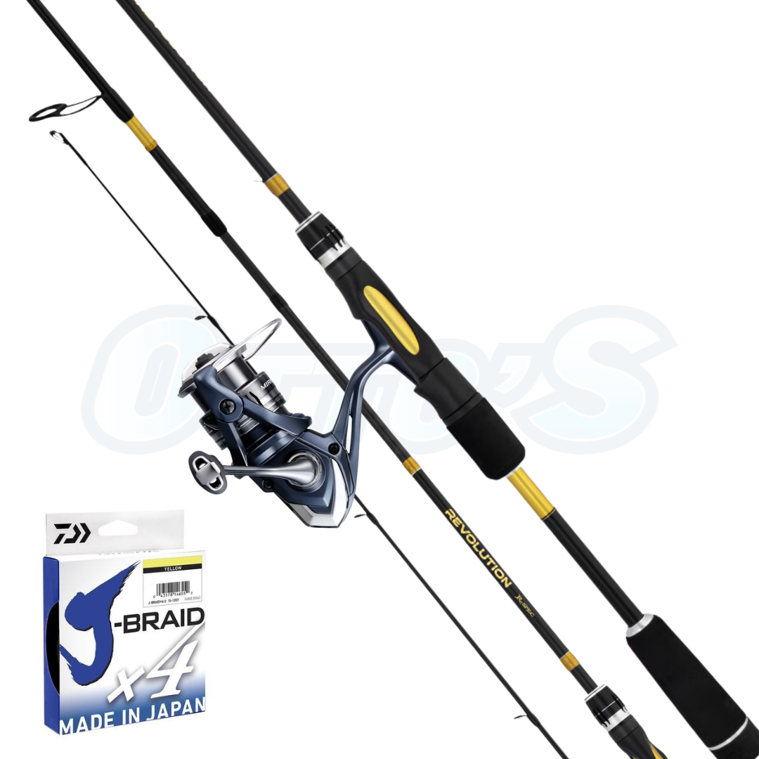This is the ideal combo for someone who is looking for a affordable but quality estuary combo. Suited to many applications of estuary fishing. whether that be chasing Flathead and Bream on plastics, Whiting and Tailor on small topwater lures or Jew on soft and hard vibes. The ci4 body of the Miravel means it is extremely lightweight and easy to fish with over long periods of time, despite its light weight it is still a very strong reel due to the cold forged gears which are reliable even under heavy pressure. The Shimano Revolution has a lightweight, responsive graphite blank acting as the perfect affordable estuary rod. The setup is spooled with J-Braid x4 a smooth, longcasting braid ideal for estuary fishing.